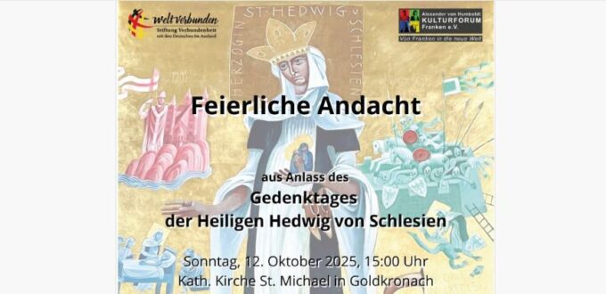 O. Marian został zaproszony do przewodniczenia i wygłoszenia Słowa Bożego w uroczystym nabożeństwie ku czci św. Jadwigi. Nabożeństwo ku czci św. Jadwigi zostało zorganizowane przez „Kulturalne Forum Frankonii von Humboldta” (Alexander von Humboldt-Kulturforum Franken e.V.) we współpracy z Fundacją „Verbundenheit” (Stiftung Verbundenheit mit den Deutschen im Ausland). Personalnym inicjatorem nabożeństwa jest [był] były poseł do […]